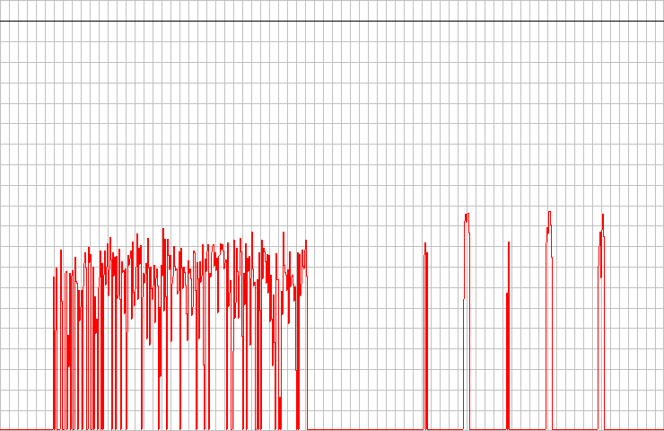 This is the result of a Plextor CD-R PX-W2410A at full maximum speed. As clearly visible, it detected quite a number of c2 errors (and it looked as the drive lowered speed itself twice). The error table of this extraction (as using a different test CD), can be seen here.